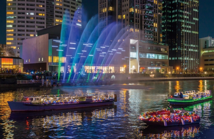噴⽔と光と⾳楽がコラボする⽔辺のエンターテイメントショー!